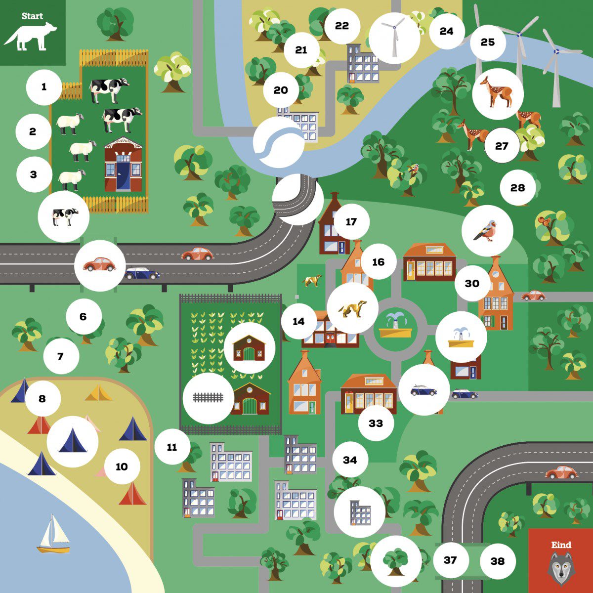 Reis als een wolf door het Nederlandse landschap en omzeil de obstakels die je onderweg tegenkomt! Je bent zelf de wolf en je speelt met een reuzedobbelsteen.