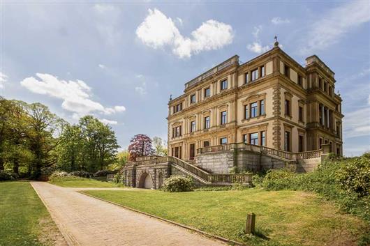 Het indrukwekkende landhuis met parkweide en parkbos heeft een sprookjesachtig karakter. Door de hoogteverschillen word je na elke heuvel en bocht steeds weer opnieuw verrast door een ander uitzicht.